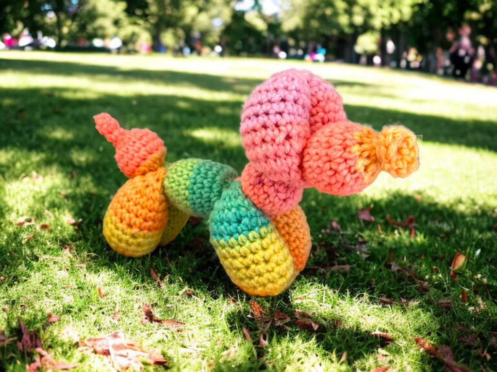 Adorable crocheted balloon dogs of varying sizes and colors (customization available). The best part – you can untwist them and put back together 🙂